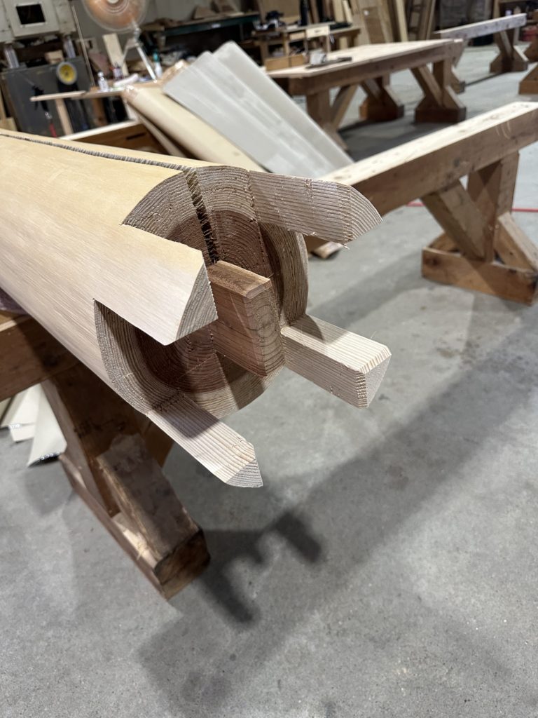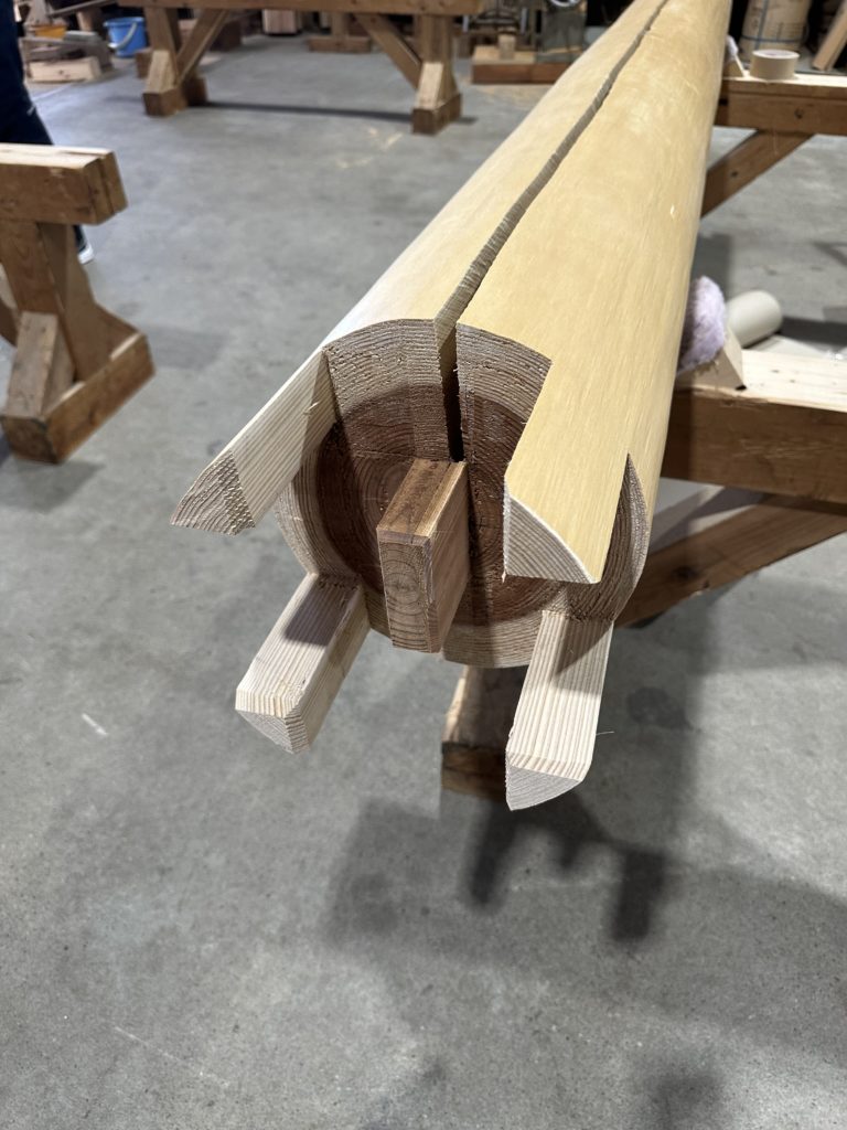 大工職人により180角と180φのビンタ加工をしました。